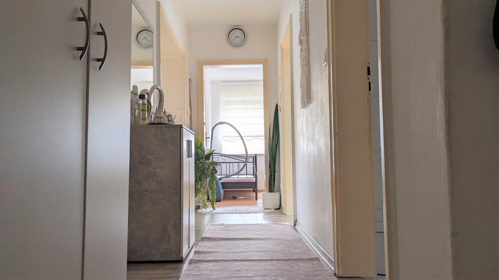 Die Wohnung wird über eine großzügige Diele betreten. Rechter Hand finden Sie einen praktischen Abstellraum sowie ein Gäste-WC vor.