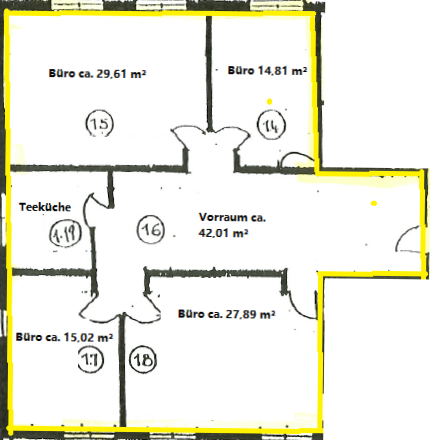 Neben 4 gut geschnittenen, hellen Büroräumen mit großem Vorraum steht Ihnen auch eine Teeküche zur Verfügung.