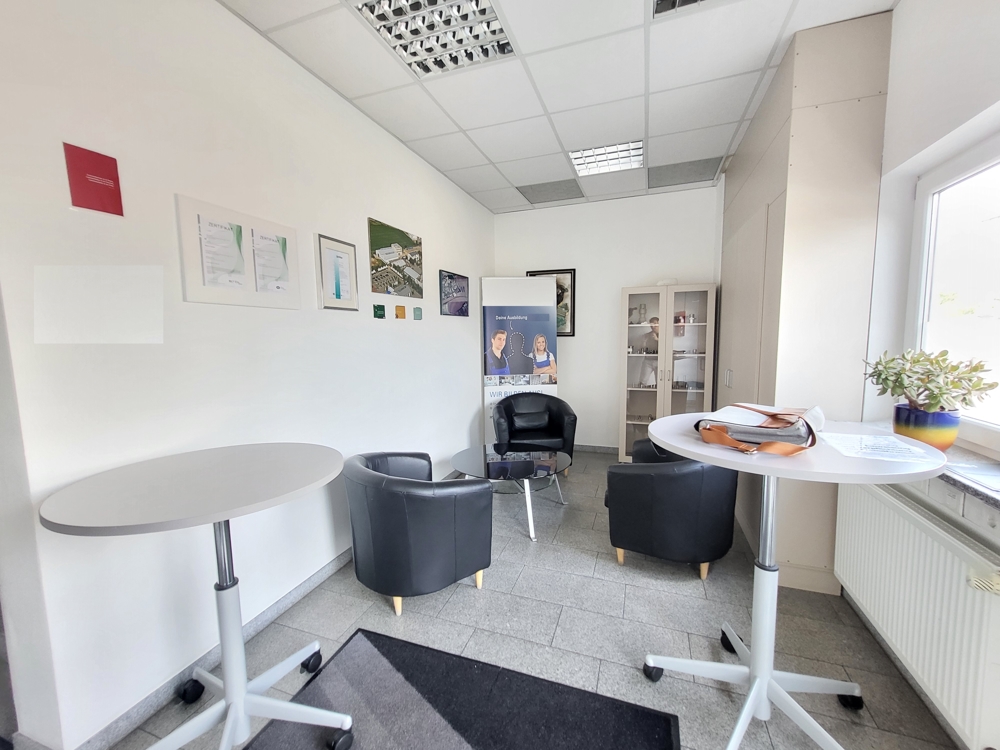 Die Büroräume sind mit strapazierfähigem Teppichboden, die Empfangs- und Sozialräume mit Fliesen ausgelegt.