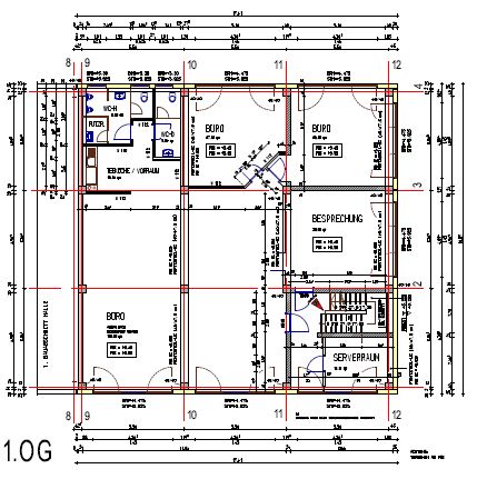 3 Büroräume, Besprechungsraum, Teeküche, WC-Damen und Herren, Heizungsraum