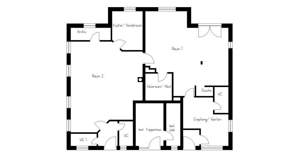 Über einen Empfang-/Wartebereich wird die Einheit betreten. Ein großer, heller Büro-, Ausstellungs- oder Verkaufsraum bieten verschiedenste Nutzungsmöglichkeiten. Hier haben Sie Zugang zu einer Terrasse. Der Heiz-/Abstellraum bietet zusätzlichen Stauraum. Eine Dusche sowie ein WC steht Ihnen zur Verfügung.
