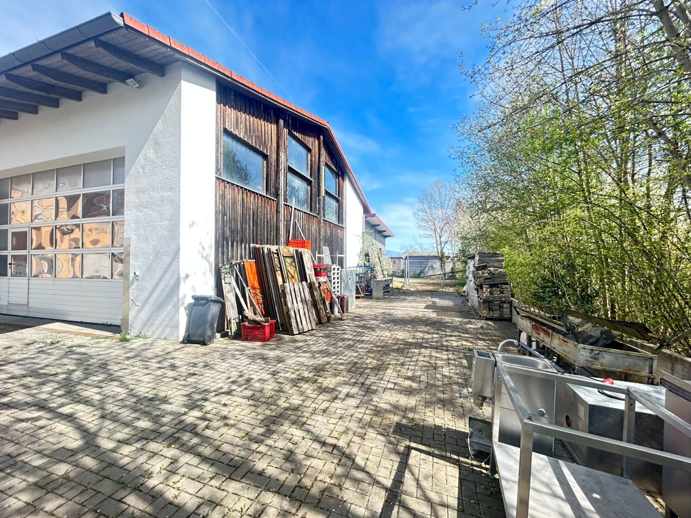 Der gepflasterte Innenhof als auch Kfz-Stellplätze vor dem Ladengeschäft bieten zahlreiche Park- und Stellmöglichkeiten.