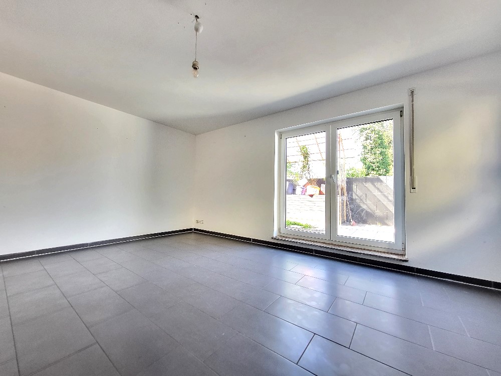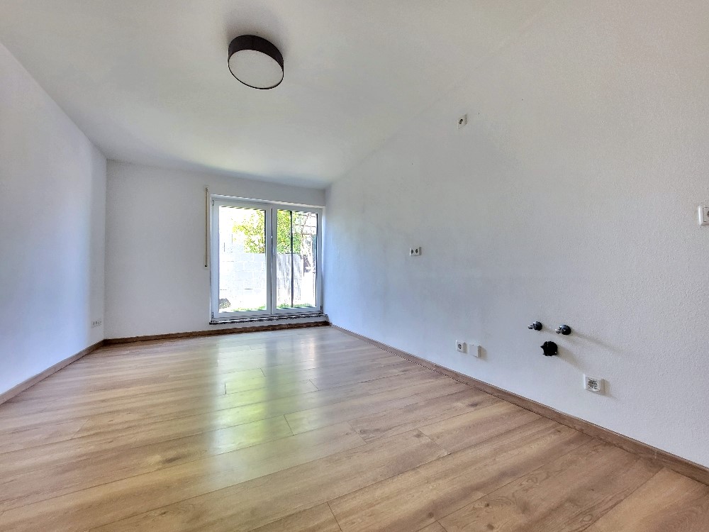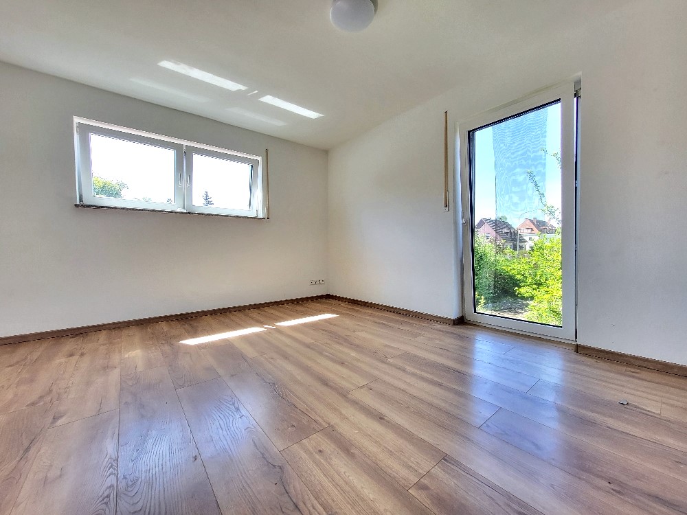 Die in den Grundrissplänen dargestellte, sehr ansprechende Architektur wurde verändert, kann aber baulich realisiert werden, sodass ein riesiger Wohn-Essbereich entsteht. Zwei große Fenstertüren führen dann auf die zur Westseite gelegene Terrasse. Aktuell ist der Bereich in zwei Teile getrennt, sodass eine Art separates 2-Zimmer-Appartement z.B. für Angehörige besteht.